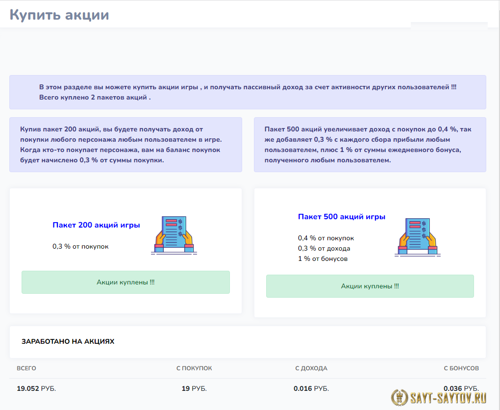 Модуль акции игры